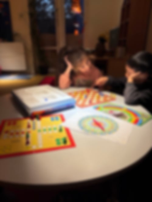 Anfangs war es noch ziemlich ruhig, da die Kinder erst nach und nach ankamen. Die meisten malten am Tisch bunte Filzstiftbilder oder bastelten mit Bügelperlen. Wer sich schon drinnen lieber bewegen wollte, machte das mit „Twister“. und danach gingen fast alle noch mit Liane nach draußen. Während drinnen noch mit den Bügelperlen weitergearbeitet wurde und Maruzah mit Eda Obst und Croissants kleinschnitt.