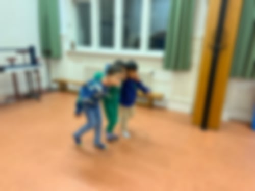 Glücklicherweise konnten wir in der Anfangs- und Tellerchenrunde verkünden, dass danach der große Bewegungsraum im Hochparterre für uns zur Verfügung stand. Nach dem Abräumen machten sich fast alle erwartungsvoll auf den Weg nach unten - es gab noch fast eine Stunde Zeit! Auch Alice, die eigentlich oben mit Bügelperlen basteln wollte, entschied sich nach kurzer Zeit, doch lieber mit den anderen Zombieball und „Erwachsene gegen Kinder“ zu spielen...