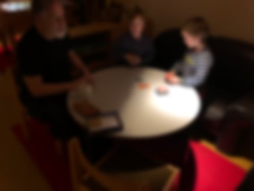 Nach der großen Tafelrunde von gestern war es ein geradezu ruhiger Tag., aber natürlich war trotzdem in fast allen Räumen was los. Bewegungsraum, Spieleraum und der Chillraum mit den Tablets wurden genutzt. Baaruh, Frederick und Michael spielten zum ersten Mal das nicht ganz einfache Brettspiel „Abalone“ und lernten recht schnell...Im Bewegungsraum war unter strenger Beachtung der vorher verabredeten Regeln sogar Zombieball (mit einem wirklich sehr soften Ball) möglich.
