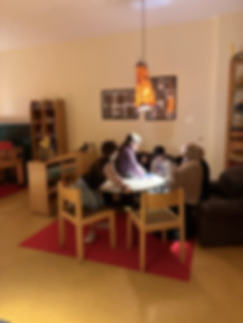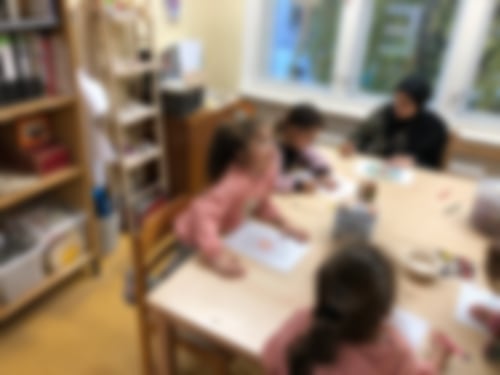 Heute mit dabei waren Alice, Fatma, Ali, Mustafa, Rayan, Lulu, Adam, Shakira, Lois, Yasmin und Biser, sowie Liane, Gina, Ilayda und Mahruzah. Zunächst haben sich die Kinder in die Räume verteilt. Im Bewegungsraum wurde getobt, im Spieleraum gekickert und im Bastelraum Mandala gemalt. Zudem haben einige Kinder die Erwachsenenrolle gespielt während Liane und Mahruzah die Kinderrolle übernommen haben. So haben auch die Erwachsenen den Bewegungsraum kurz zum Spielen genutzt.