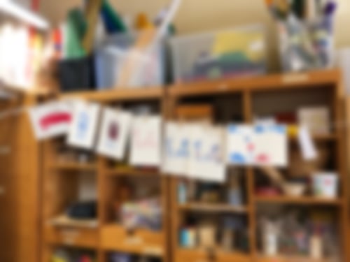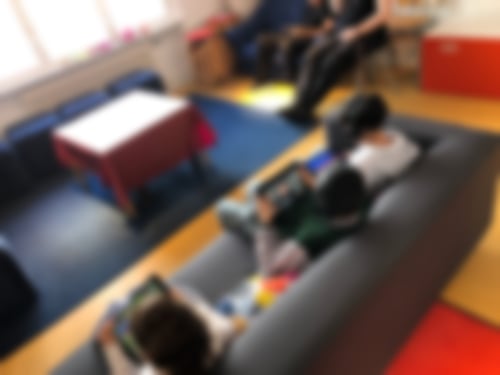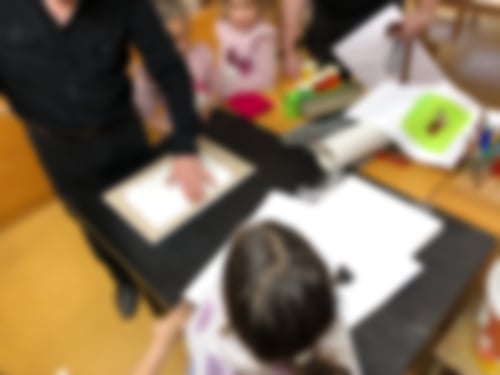 An diesem Dienstag war nämlich nicht nur Tablet-Tag (das natürlich auch, und der Chillraum wurde eifrig dafür genutzt). Wir haben heute unseren Kunst-Workshop fortgesetzt und eine neue Drucktechnik erprobt. Dabei wurden verschiedene Materialien ausgeschnitten, zusammengesetzt und dann mit Druckfarbe eingewalzt. Von dieser Vorlage konnte dann gedruckt werden.