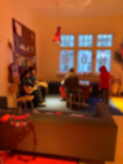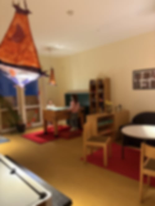 Es war ein ruhiger Tag, ohne großen Streit oder Konkurrenz um einzelne Aktionen. Am meisten war natürlich im Chillraum los, aber auch hier ging es friedlich zu. Neben den Tabletspielern konnten die größeren Kids dank der Kopfhörer sogar ein bisschen Musik machen und hatten am Ende interessierte Zuhörer. Auch der Spieleraum und der Bewegungsraum wurden genutzt, ohne dass es richtig voll wurde. Zum Beispiel konnte Yuxuan, die heute ihren Probetag hatte - herzlich willkommen! - als Auftakt mit Fatma in aller Ruhe ein paar Runden kickern.
