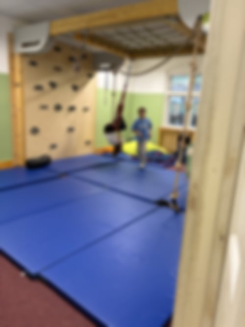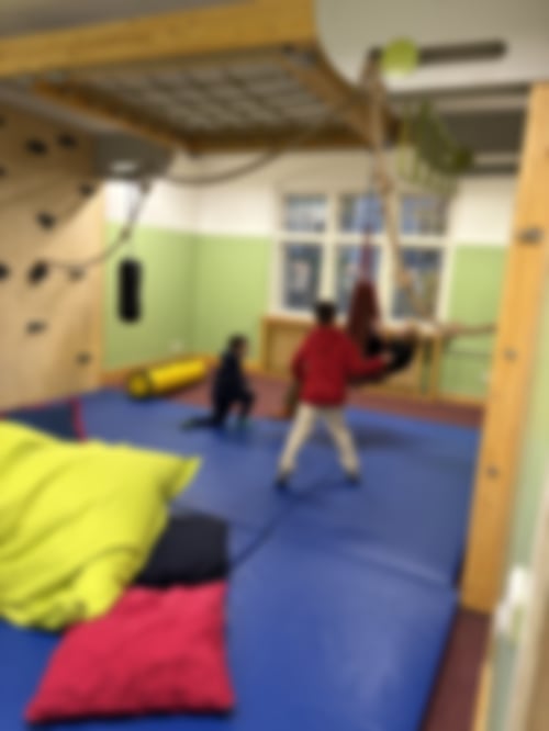 Die Abschluss LaOla kam von Adam: Heute waren wir im großen Bewegungsraum.