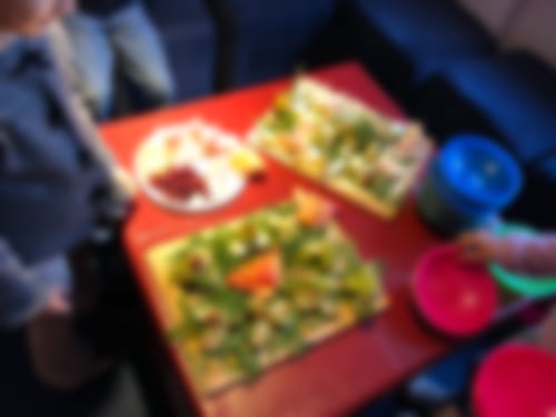 Heute waren mit dabei Eda, Biser, Fatma, Jovena, Baaruh, Abeer, Ali, Mustafa, Mariam mit Schwesterchen nadia, Daniyal, Ali, Arbaz, Sebastian, Amilia, Jolina und Raphaelle mit Papa sowie Mahruzah, Liane, Snezha, die neuen Praktikantinnen Masa und Sindi, Gina und fürs Essen und die Abschlussrunde dann auch Sanne. Die ersten Kids waren ganz fleißig und schnippelten in Rekordzeit Zwiebeln, Schluppen und Petersilie fürs kochen, schlugen Unmengen an Eiern auf und bereiteten alles für die Salatplatte vor. Danach war noch genug Zeit zum Spielen und Malen im Treff und auch ein bisschen draussen auf dem Spielplatz. Um 17 Uhr haben sich dann alle zusammengesetzt und Liane präsentierte unser heutiges Essen: Soboro Don aus Japan, also Reis mit Hackfleisch und Rührei, dazu noch Erbsen und natürlich bereits erwähnte Salatplatte. Alle Kinder und Nachbarn langten ordentlich zu und holten sich eifrig Nachschläge. Als alle aufgegessen hatten, trafen wir uns im Kreis, wo Sanne und von dem Fest gegen Rassismus berichtete, welches nun doch in etwas kleinerer, aber nicht weniger schöner Form am Stadtschloss stattfinden wird am 25.März. Dafür übten wir unser Anti-Rassismus-Lied und redeten noch darüber was Rassismus eigentlich ist. Dann war auch schon Zeit für die Abschlussrunde und die Abschluss-LaOla: Wir feiern ein Fest (gegen Rassismus).