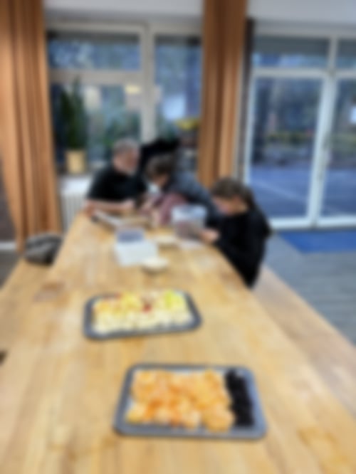 In den Treff kamen heute: Funda, Eda, Mariam, Daniyal, Biser, Rayan, Evin und Lavin mit Mama, Seyma, Cinar und Lyutfi mit Mama, Ella, Eleni und Baby Elias mit Mama, Alice, Adam und Lulu sowie Dilara, Liane, Mahruzah, Snezha und Henning. Und zum Essen - wie immer - mindestens ein Dutzend Gäste des Treffs und Kolleg*innen aus dem Haus.