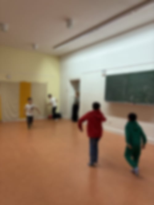 Um 16:30 Uhr kamen wir zusammen zur Anfangsrunde, wo es Obst und Schokoküsse von Snezha gab. Danach sind wir runter in den großen Bewegungsraum gegangen und haben Karottenziehen, 2-Felderballund Zombieball gespielt. Um 18:00 Uhr sind wir wieder hoch und einige Kinder haben getanzt und andere waren im Bewegungsraum. Schließlich haben wir Dunkelverstecken gespielt.