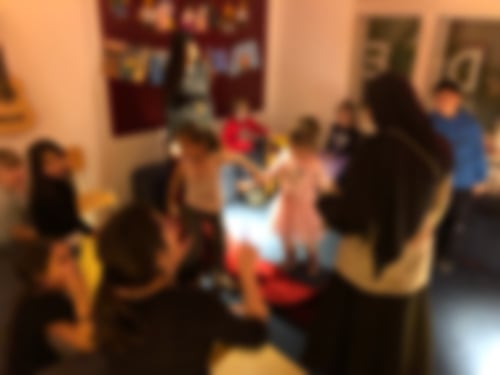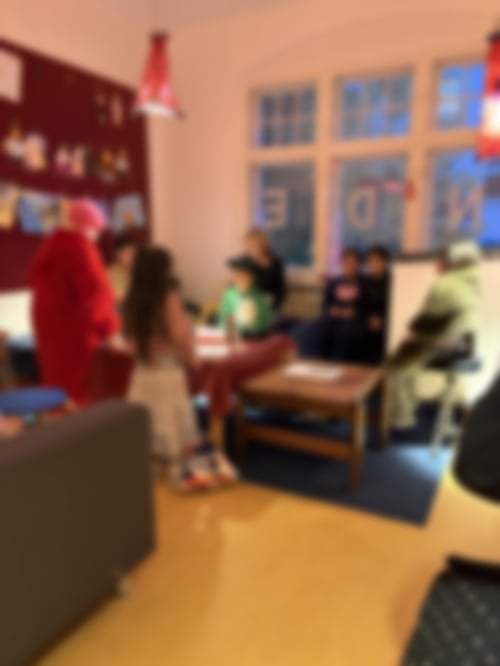 Mit dabei waren heute Ali, Fatma, Michael, Frederick, Daniyal, Baaruh, Fatiman, Arbaz, Hiranur, Miranur, Funda, Emrullah, Eda, Blaise, Liam und Sebastian sowie Ilayda, Gina, Mahruzah, Luana, Dilara und Emine von den Großen. Erst wurde natürlich im Bewegungsraum getobt, im Bastelraum gemalt und mit Bügelperlen gewerkelt, im Spieleraum wurde gekickert und Uno sowie Memory gespielt. Im Chillraum fand sich eine Gruppe zusammen, die Theater spielte und ihr Stück „Schule Sprachwelt“ später auch in der Anfangsrunde aufführte. Danach wurde gegessen, unsere großen Jungs bekamen einen Raum nur für sich und die anderen entschieden sich für Spiele i der großen Runde: Namen raten, Decken verstecken und Tanzparty! Schließlich war schon Zeit für die Abschlussrunde und selbstverständlich Dunkelverstecken. Die LaOla kam dann von Liam: Heute machen wir Party!