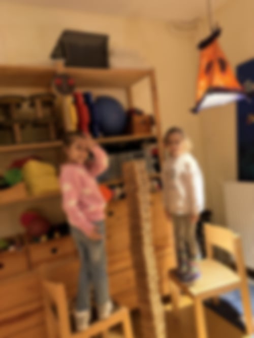 Die Aufteilung am Anfang war eigentlich wie immer: Tabletraum und Bewegungsraum waren am beliebtesten - bei dem schlechten Wetter konnten sich die Kids auf der Etage ihre Portion Sport und Bewegung geben! Im Spieleraum und im Bastelraum war nicht ganz so viel los, aber Miranur und Hiranur übten sich sehr ausdauernd im Zeichnen. Dabei wurden ihre Bilder nicht ganz fertig, aber sie wollen morgen weitermachen.