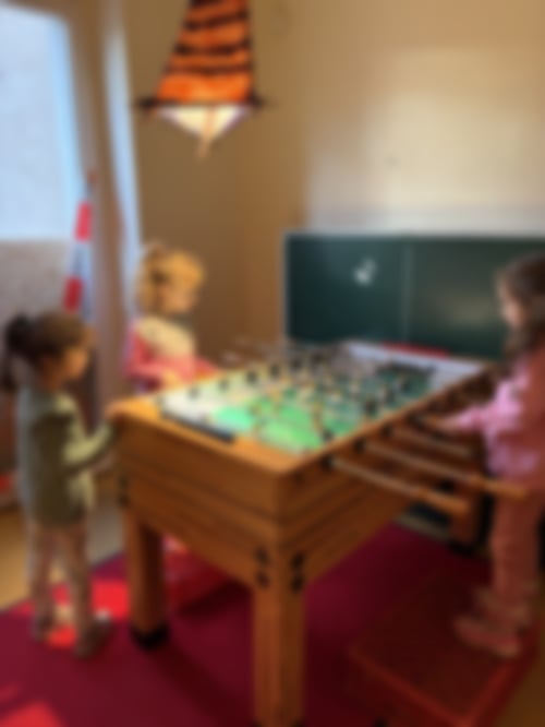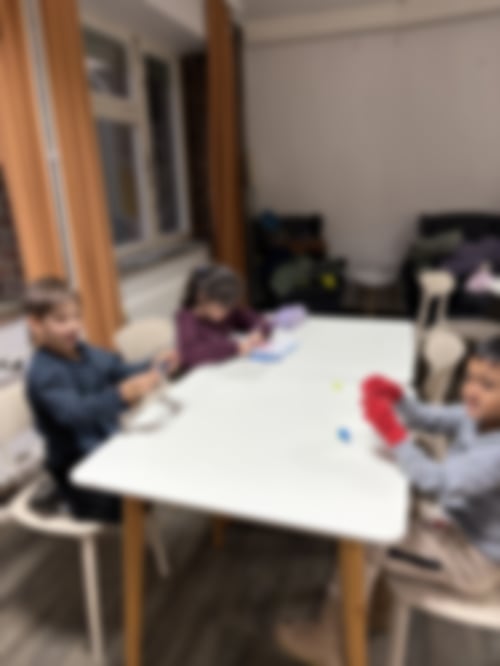 Heute mit dabei waren Mohammed, Sebastian, Rayan, Biser, Fatma, Miranur, Hiranur, Eda, Funda, Evin, Mariam, Ali, Abeer, Ali, Mustafa, Adam, Lulu und Daniyal sowie Liane, Gina, Ilayda und Mahruzah. Zunächst haben sich die Kinder in die Räume verteilt. Im Bewegungsraum wurde getobt, im Bastelraum gemalt und mit Bügelperlen gearbeitet, im Spielraum mit dem Kicker gespielt und im Chillraum wurde musiziert. Um 16:30 Uhr kamen alle zusammen zur Anfangsrunde. Es wurde Brot und Obst gegessen. Danach sind wir runter in den großen Bewegungsraum und haben Karottenziehen, 2-Felder-Ball, Erwachsene gegen Kinder, Stuhltanz und Zombieball gespielt. Dann sind wir hochgegangen und haben die Abschlussrunde gemacht und Dunkelverstecken gespielt. Die Abschluss LaOla kam von Daniyal und lautete: heute war Dunkelverstecken ganz gut!