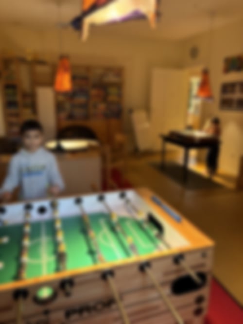 Auch alle anderen Räume waren gut besetzt. Im Bastelraum wurde getöpfert, gezeichnet UND mit Bügelperlen gebastelt! Den Spieleraum konnten wir schon recht früh freigeben, denn die Handwerker, die ihn vorher besichtigen mussten, kamen zum Glück sehr früh und brauchten nicht sehr lange. In diesem Raum machten dann die großen Kids „ihr Ding“: Musik mit dem Elektroklavier. Weil sie dabei Kopfhörer benutzten, konnten Liam und Daniyal nebenher sogar kickern. Und auch der Bewegungsraum wurde gerne genutzt: zum Draußenspielen war das Wetter heute wirklich zu nass!