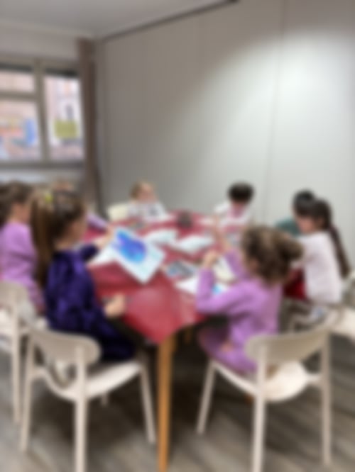 Ein bisschen ruhiger als gestern war es schon, aber alle fanden ihre Aktionen - Arbeiten am Tablet im Chillraum, ganz viel Action im Bewegungsraum, Zeichnen und Perlenschmuck basteln im Bastelraum, Tellerchen mit Obst und Yoghurt vorbereiten... die Großen machten eine Zeitlang „ihr Ding“ (vor allem Musik) im Spieleraum... Funda, Eda, Ali und Biser übten ein kleines selbsterdachtes Theaterstück ein, Baaruh führte ein spannendes Gespräch über Geographie und Landkarten, und Eda verlor zwischendurch einen Wackelzahn!