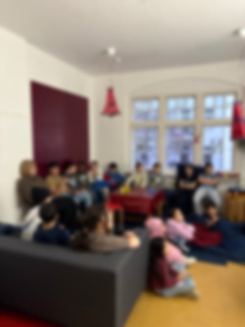 Mit dabei waren heute Daniyal, Abdel, Mohammed, Jamal, Biser, Rayan, Fatma, Miranur und Hiranur und von den Erwachsenen Mahruzah, Wu, Emine, Liane, Gina und Sanne (die zwei letzteren aber eher im Büro). Die Kinder verteilten sich zunächst auf die Räume, im Chillraum wurde musiziert und mit Hilfe von kleinen Videos besonders Gitarre spielen geübt, der Bewegungsraum lud zum spielen und toben ein (leider auch ein bisschen zu Verletzungen) und im Spieleraum wurde gekickert und Billard gespielt. In der der Anfangsrunde gab es Obst und Muffins für alle, schließlich ging es runter in den großen Bewegungsraum. Dort sollte erst eine Tanzparty veranstaltet werden, was anfangs auch gut klappte, dann aber leider wurden Kinder fürs Tanzen ausgelacht. Die Erwachsenen entschieden dann, dass die Gruppe wieder nach oben geht, wo erst im Kreis darüber geredet wurde, warum wir zu den Stadtschloss-Kids kommen und was wir hier erleben möchten und alle waren sich einig, dass wir hier Spaß haben, Freunde finden wollen und das alle anderen nett zu uns sind, was ja nicht so gut dazu passt, andere Kinder auszulachen. Es wurde sich entschuldigt und schließlich noch ein wenig im Spieleraum gespielt, bis dann Zeit war für die Abschlussrunde, heute geleitet von Daniyal. Dunkelverstecken gab es dann natürlich auch noch und die LaOLa kam von Biser: Wir waren kurz im großen Bewegungsraum!