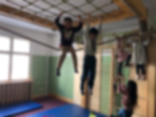 Wie die lange Namensliste oben zeigt, war heute richtig was los, und daher waren auch die anderen Räume richtig voll - vor allem der Bewegungsraum, denn das Wetter war noch schlechter als gestern und die Kinder daher voll im „Bewegungs-Minus“. Immerhin war im Spielraum irgendwann genug Platz für die „Großen“, die dort eine Zeitlang für sich sein konnten. Und fast alle waren durch die Ferien und das schlechte Wetter ein bisschen „aufgedreht“.