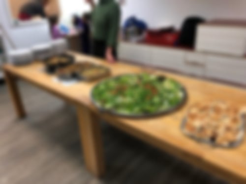 Und schon war es wieder Zeit zum Essen in der großen Runde. Inzwischen war es auch ziemlich voll. Gut, dass die beiden Mamas noch selbstgebackenen Kuchen und Möhrchen mitbrachten. Vielen Dank!