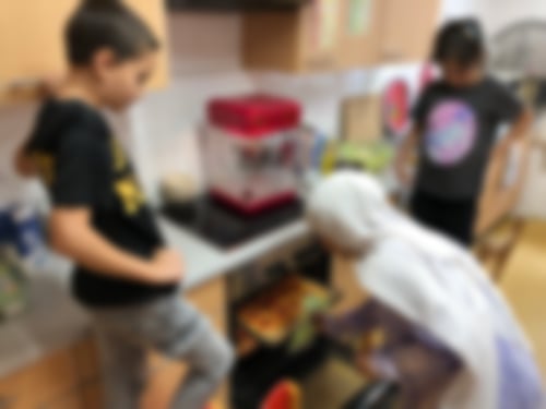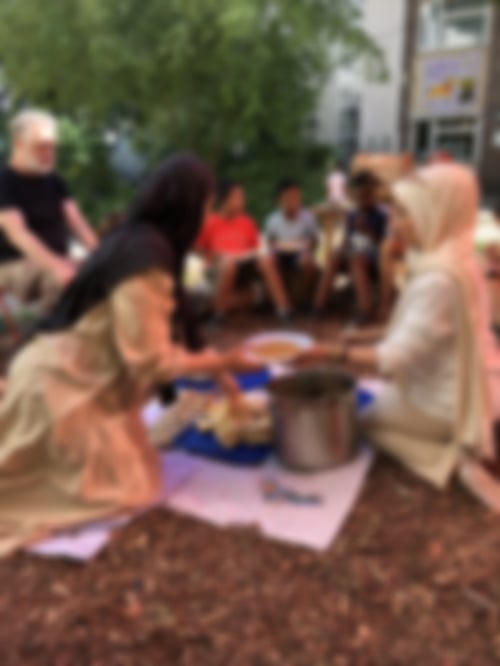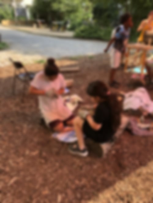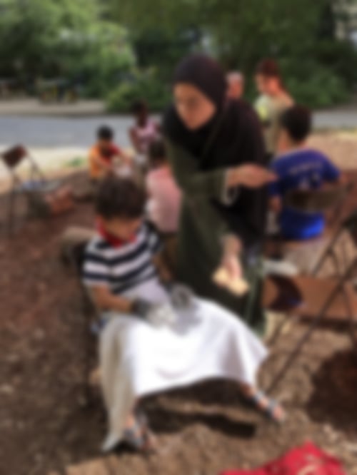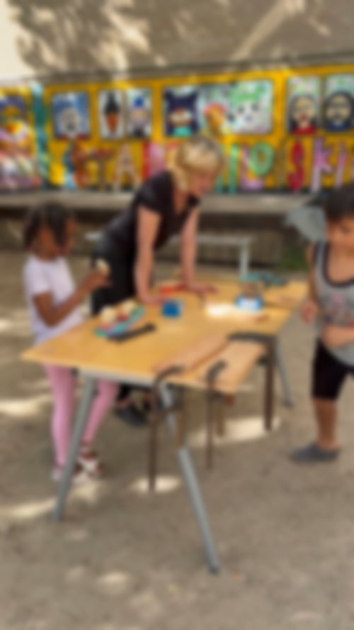 In der ersten Woche machte uns allen die große Hitze zu schaffen, aber mit viel Wasser (zum Trinken und zum Befeuchten) konnten wir durchhalten. Pausen auf dem Spielplatz und der schattigen Terrasse des Nachbarschaftstreffs halfen auch. Und vor allem haben Snezha und Fadila uns jeden Tag mit großartigem Essen verwöhnt – je nach Tageshitze warm oder kalt, aber immer lecker. Ein echter Kraftspender!