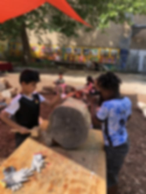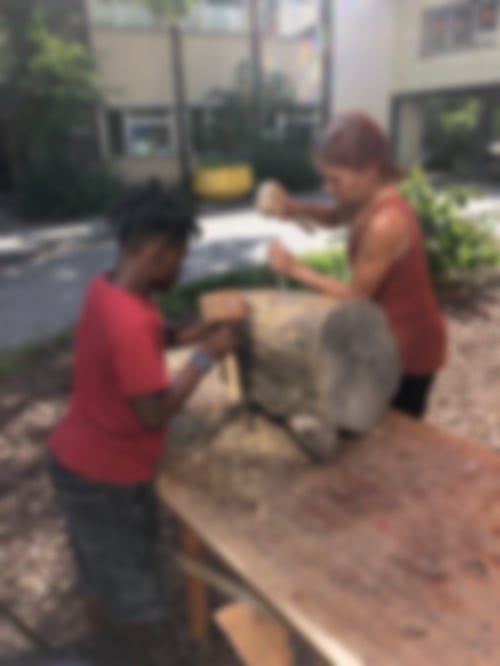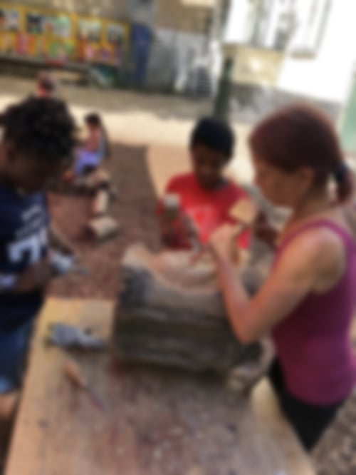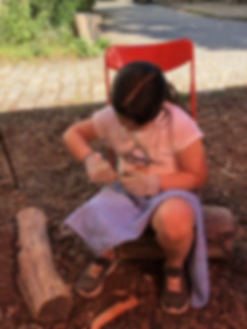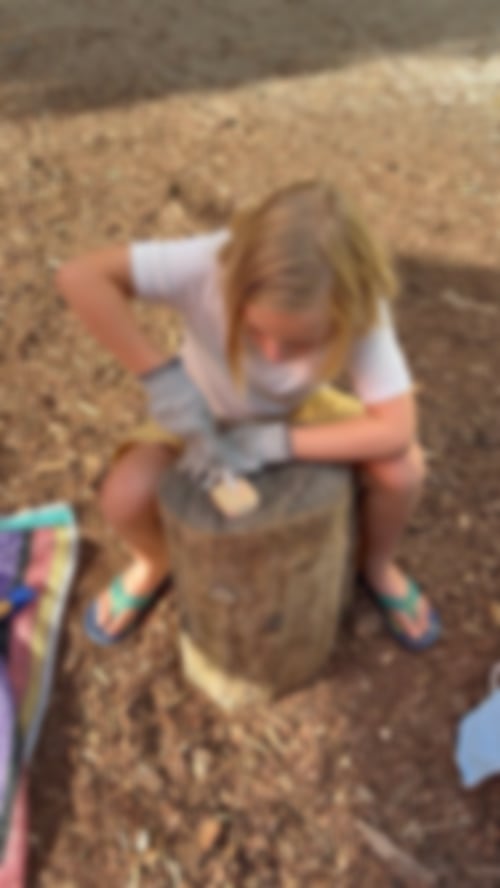 So verschieden wie die Kinder sind auch ihre Arbeiten: kleine Schmuckanhänger, Schiffe, geschnitzte Figuren, Löffel und sogar zwei kleine Tische. Zwei Highlights: Ein Kind hat eine wunderschöne Holzschüssel fertiggestellt, mit der es im vorletzten Jahr begonnen und im letzten Jahr weitergearbeitet hatte. Und zu dem "Gesicht im Baumstamm" aus unserem allerersten Holzworkshop ist ein zweites dazugekommen, geschaffen von zwei größeren Kids.