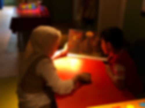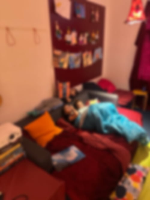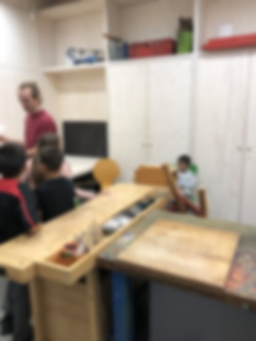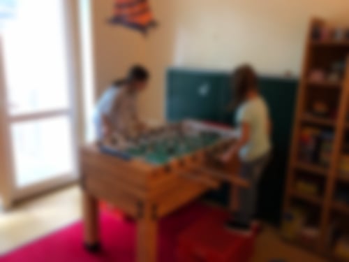 An unserem zweiten Ausflugstag regnete es leider, sodass ein paar Kinder, die keine Regenkleidung hatten, mit Sanne auf der Etage blieben und dort im Bewegungsraum eine Höhle bauten, in der dann ein kleiner Mittagsschlaf eingelegt wurde. Der Rest der Gruppe besuchte eine andere Einrichtung in Moabit – den Moabiter Kinderhof! Dort wurden wir durch die Einrichtung geführt, die auch gerade erst in neue Räumlichkeiten gezogen ist. Besonders beeindruckt waren wir vom Kinoraum und natürlich von den Hasen, die wir aber leider wegen der noch andauernden Bauarbeiten nur durch den Zaun sehen konnten und deswegen auch nicht streicheln durften.