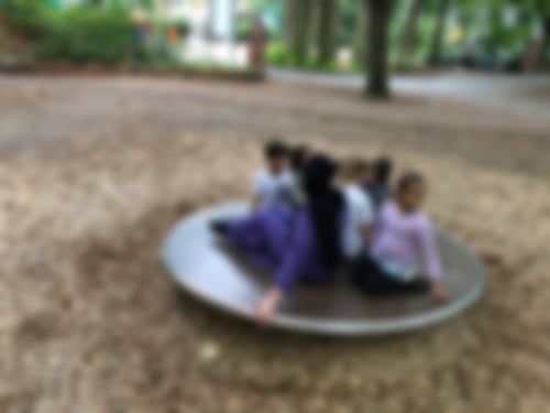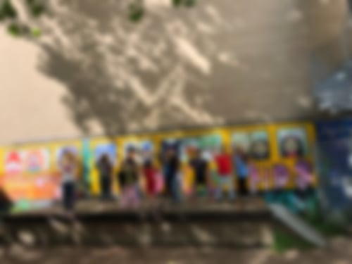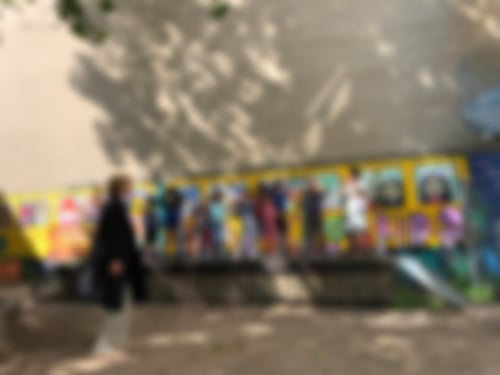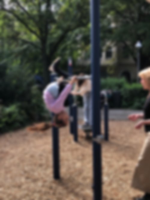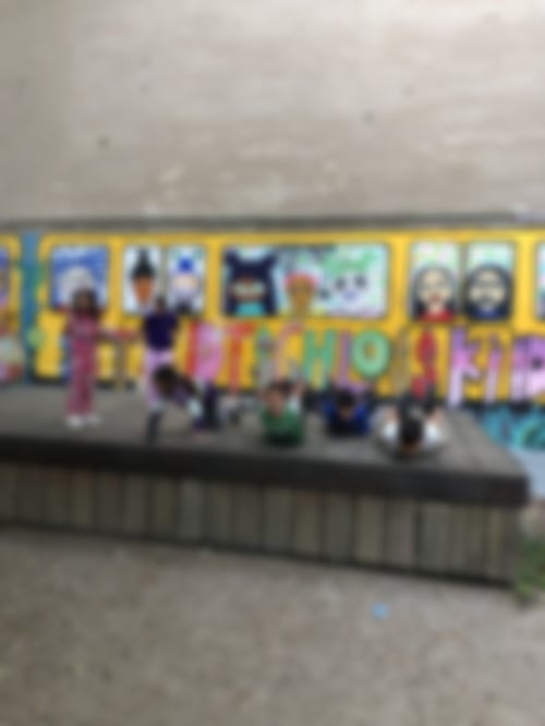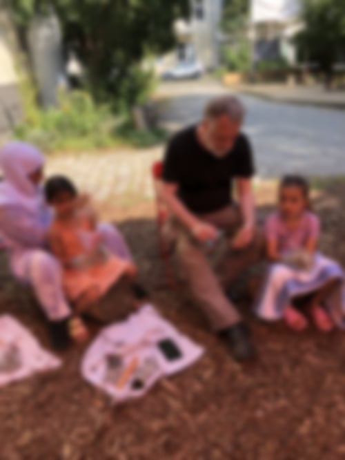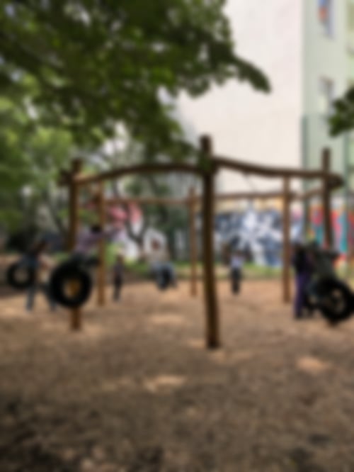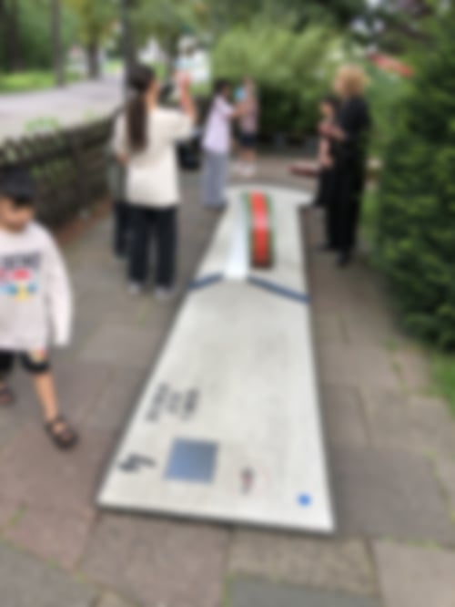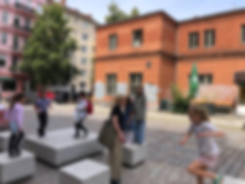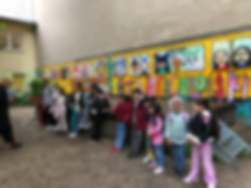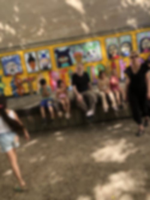 haben die künstlerische Arbeit bewundert. Dann sind wir zu verschiedenen Spielplätzen