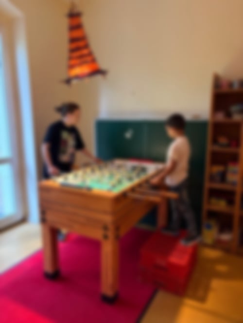 Auch der dritte Ausflugstag war leider zu verregnet, um das Stadtschloss zu verlassen – aber so hatten wir ausreichend Zeit, um im großen Bewegungsraum Karottenziehen, Zombieball, „Erwachsene gegen Kinder“ und Zweifelderball zu spielen.