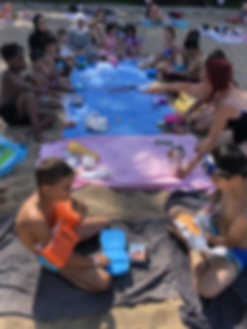 Dann konnten wir endlich unseren ersten Ausflug zum Plötzensee dieses Jahr machen! Es wurde geplanscht, einige Kinder übten das Schwimmen und durften dafür mit Sanne sogar hinter die Linie, die den Nichtschwimmerbereich markiert. Es wurde gerutscht, Ball gespielt, Sandburgen und Dämme gebaut, sich im Sand gewälzt – und das beliebte gemeinsame Picknick gab es natürlich auch. Wieder saßen wir um unsere Decken herum und teilten unser Essen – Ginas Butterkekse durften natürlich auch nicht fehlen!