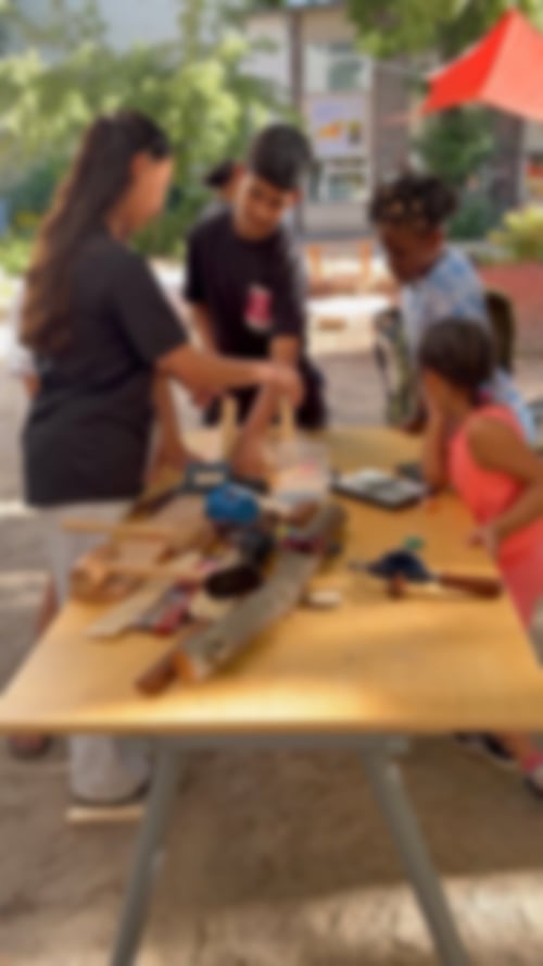 Zwei lebhafte Wochen im Hof des Stadtschlosses liegen hinter uns: die Sommer-Holzwerkstatt 2025! Viele große und kleine Kinder waren dabei, "alte Hasen" und Anfänger*innen. Einige kamen zum ersten Mal ins Stadtschloss, manche sogar – mit ihren Eltern – aus weit entfernten Stadtteilen, und es hat vielen so gut gefallen, dass sie auch nach den Ferien wiederkommen wollen.